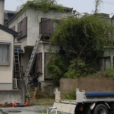 - 緊急の越境枝のトラブル解消から、地上部分すべての樹木伐採撤去、抜根まで、あらゆる庭木の伐採作業を承ります。
